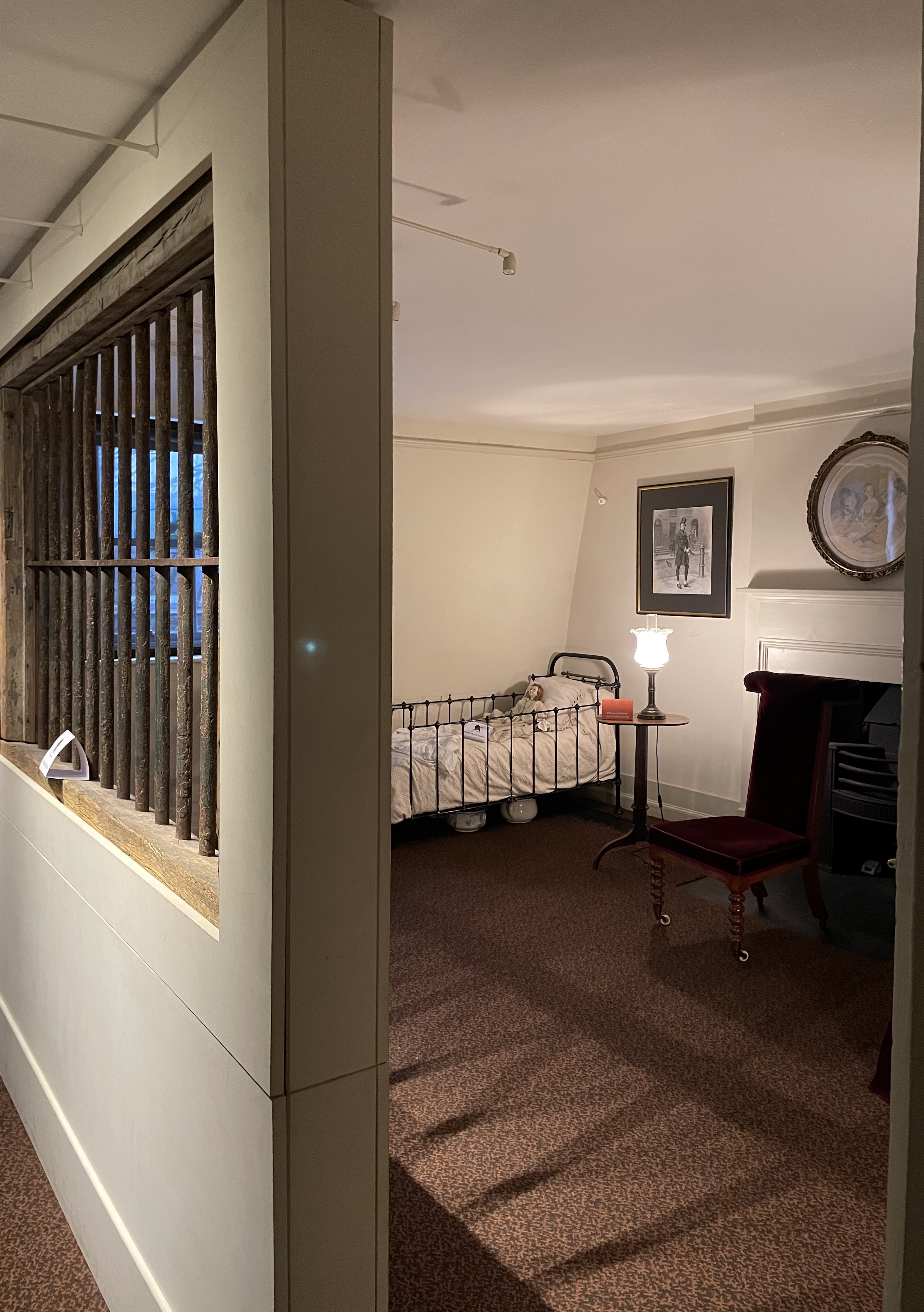 The next thing you realize is how many floors this house has because as you climb to the next level to find the bedrooms, you realize this is by no means the end. On the top floor is the nursery, which was a kind of sad room, maybe because the sun was setting and it was getting dark. But also the bars from Marshalsea prison didn’t help, I am not sure what came over the curators to choose the children’s room as a fitting space to display the bars.
